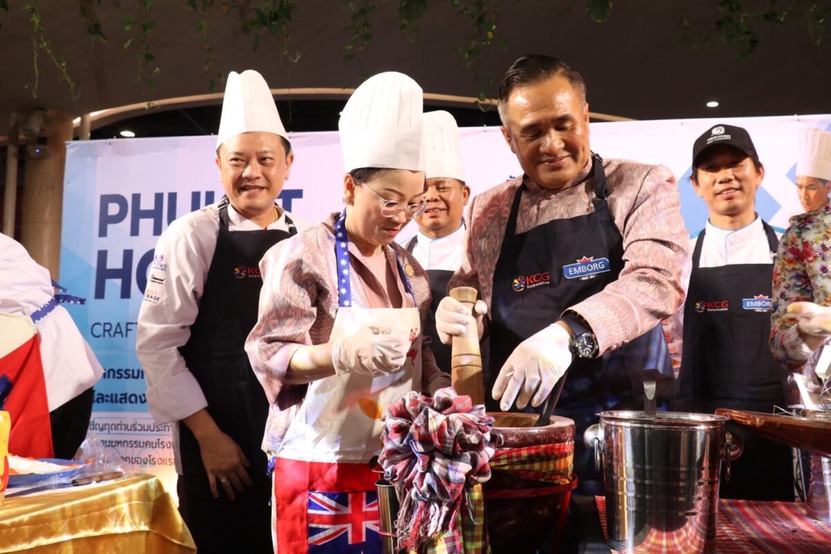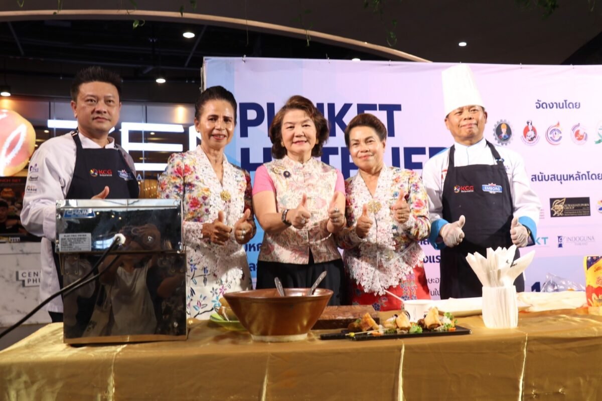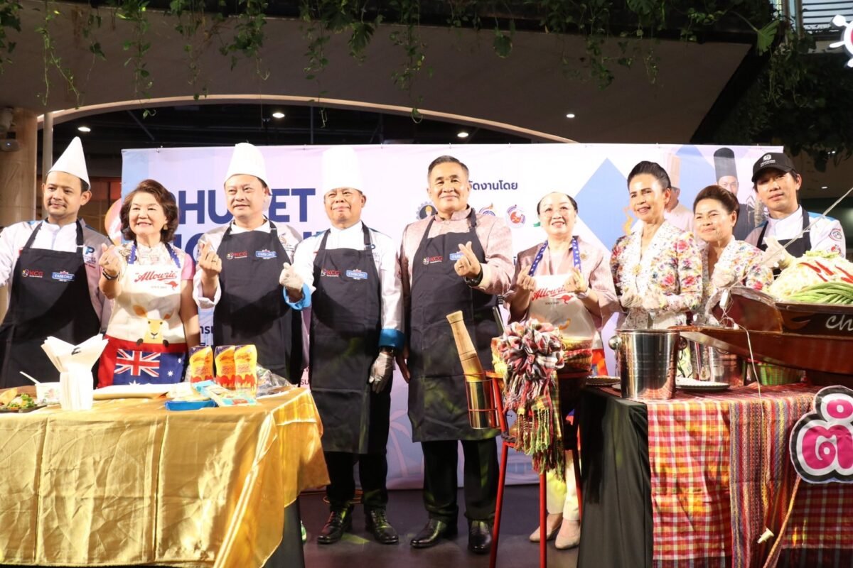 The press event was filled with vibrant performances, starting with a show by the Southern Association of Technical and Skills Development, followed by a showcase from the Andaman Food and Beverage Association. A key highlight was the interactive cooking demonstrations: Governor Saranasak and Mrs. Rudeevan Srikruenate prepared “Som Tam” (papaya salad) together, while Ms. Anchalee Vanich Thepabutr, President of Phuket Art Association, demonstrated the making of vegetarian spring rolls, drawing warm smiles and applause from attendees.