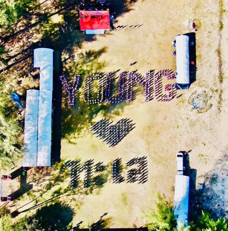 • Formation of human signage displaying the message “Young Love the Sea”