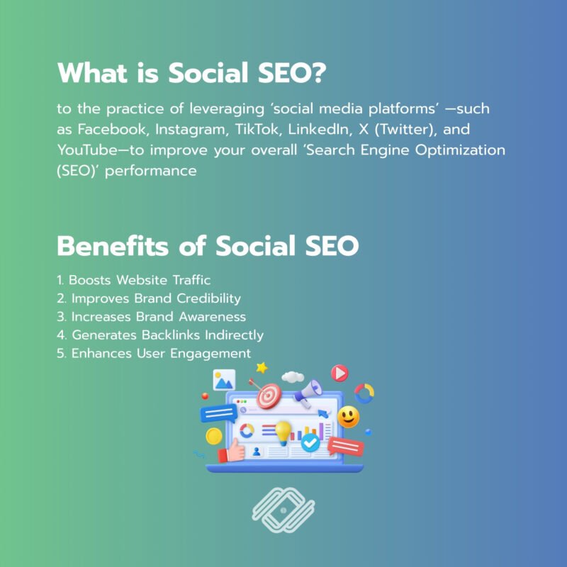 Social SEO refers to the practice of leveraging ‘social media platforms’ —such as Facebook, Instagram, TikTok, LinkedIn, X (Twitter), and YouTube—to improve your overall ‘Search Engine Optimization (SEO)’ performance.