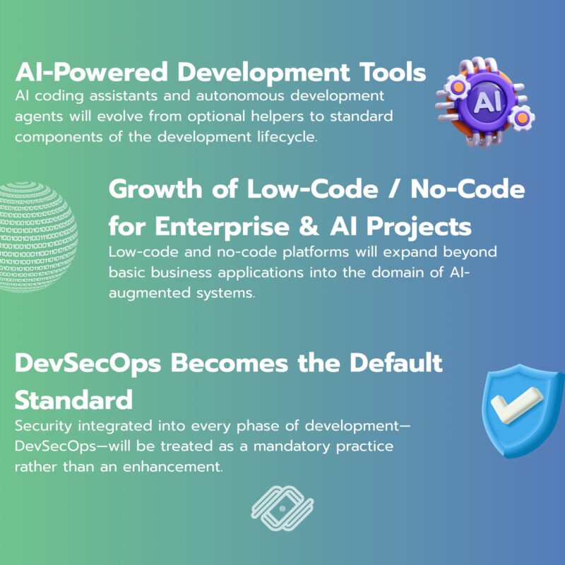 Overview: Security integrated into every phase of development—DevSecOps—will be treated as a mandatory practice rather than an enhancement. Automated vulnerability scanning, security-as-code, and shift-left testing will be embedded into CI/CD pipelines.