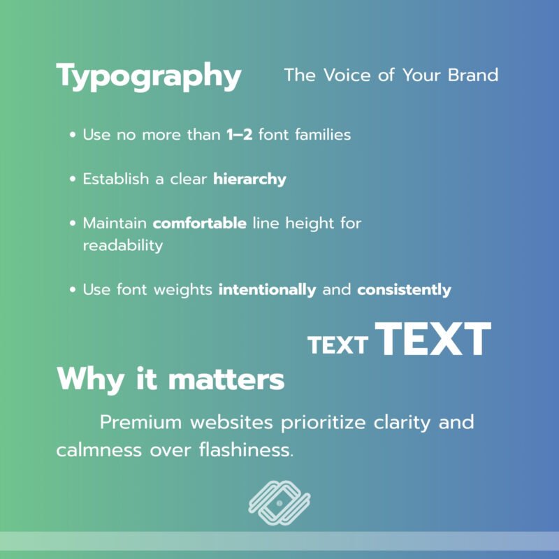 Premium websites prioritize clarity and calmness over flashiness. Using too many fonts or inconsistent sizing immediately makes a website look amateur.