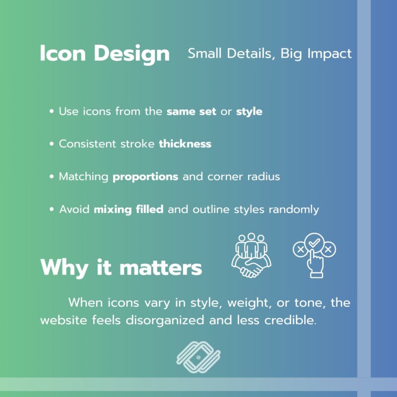Icons may seem minor, but inconsistency here can instantly break the professional look of a website.
