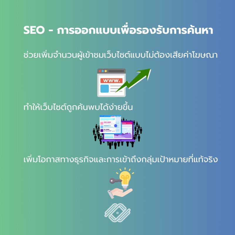- SEO (Search Engine Optimization) – การออกแบบเพื่อรองรับการค้นหา
