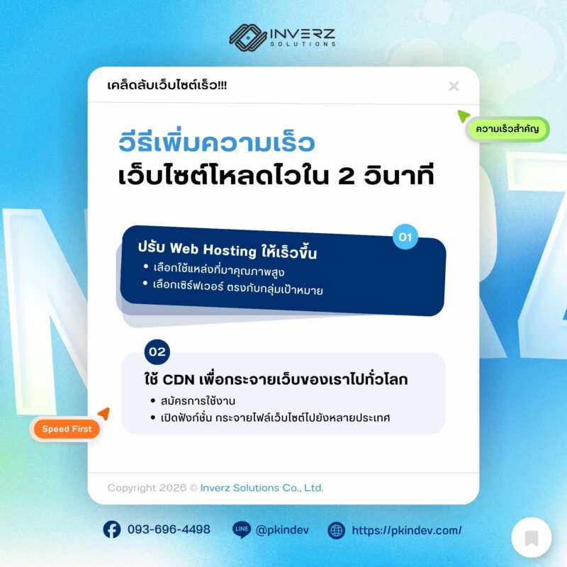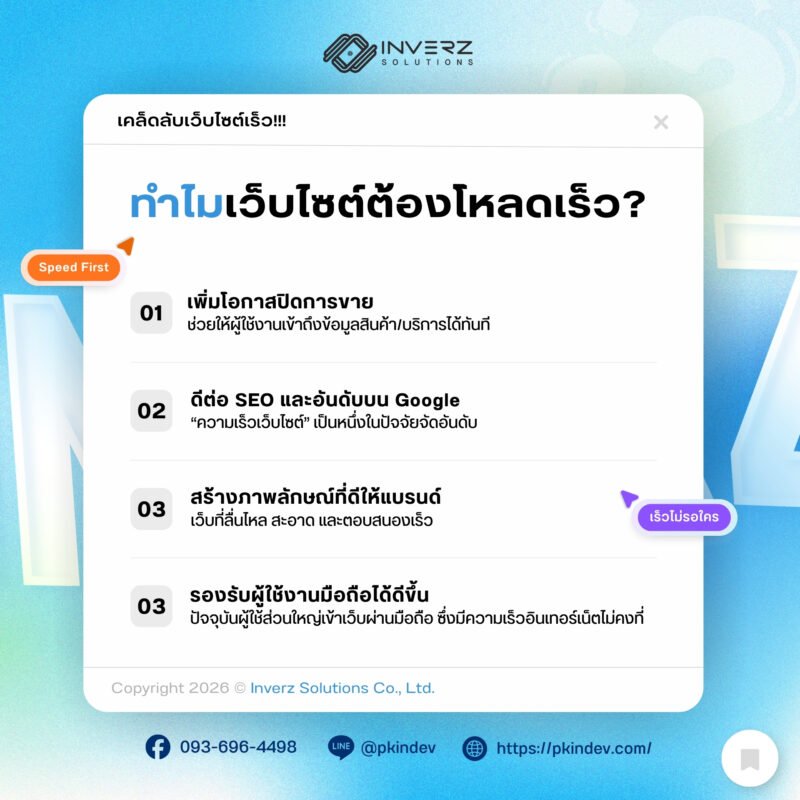 เว็บไซต์ที่เร็วขึ้นไม่เพียงช่วยเรื่อง SEO แต่ยังเพิ่มยอดขาย สร้างความน่าเชื่อถือ และทำให้ธุรกิจของคุณแข่งขันได้อย่างมั่นคงในโลกดิจิทัล หากคุณกำลังทำธุรกิจออนไลน์อยู่ วันนี้อาจเป็นเวลาที่ดีในการเริ่มตรวจสอบความเร็วเว็บไซต์ของคุณ แล้วปรับให้เร็วขึ้นก่อนคู่แข่ง